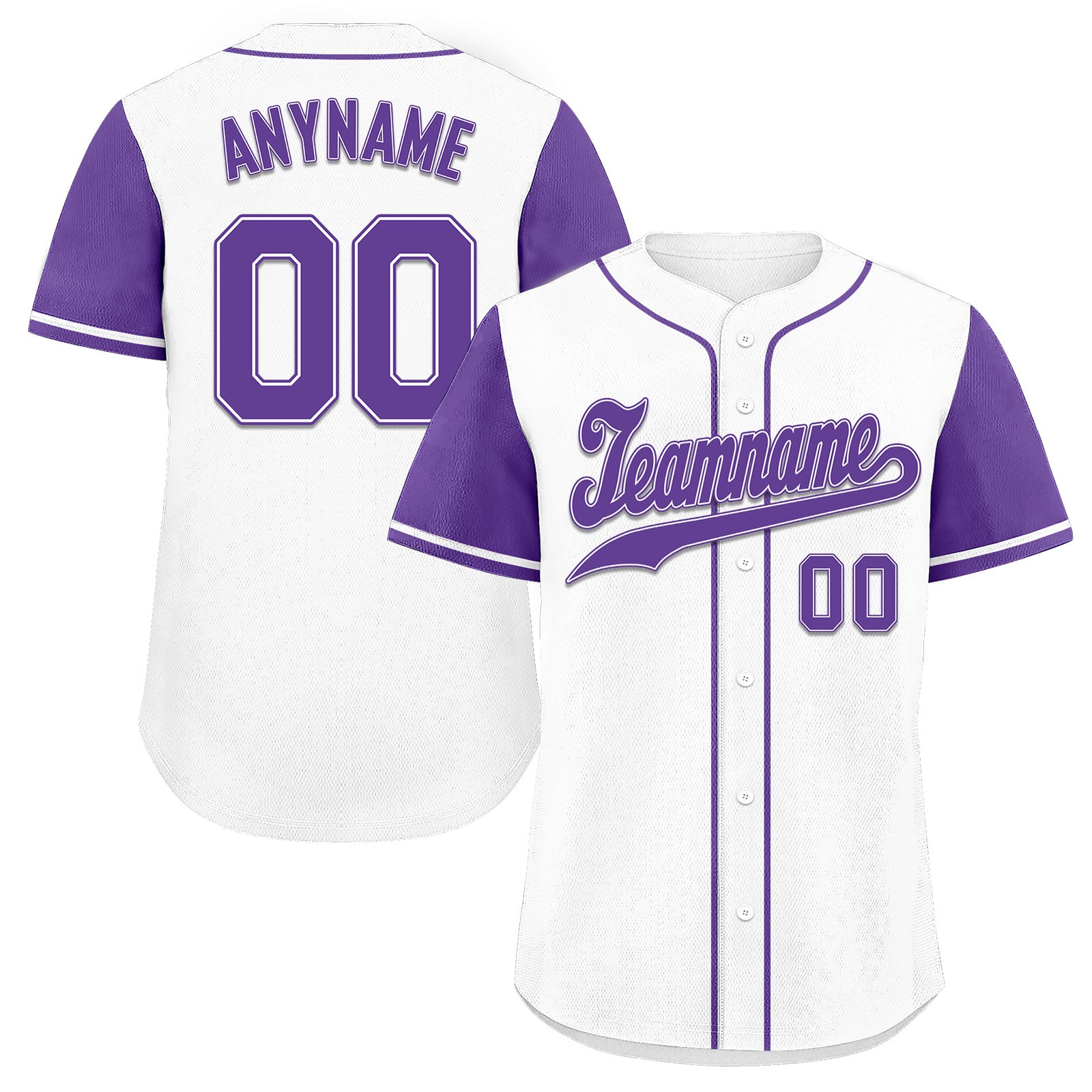 Custom White Purple Raglan Sleeves Personalized Authentic Baseball Jersey BSBJ01-D020200-13