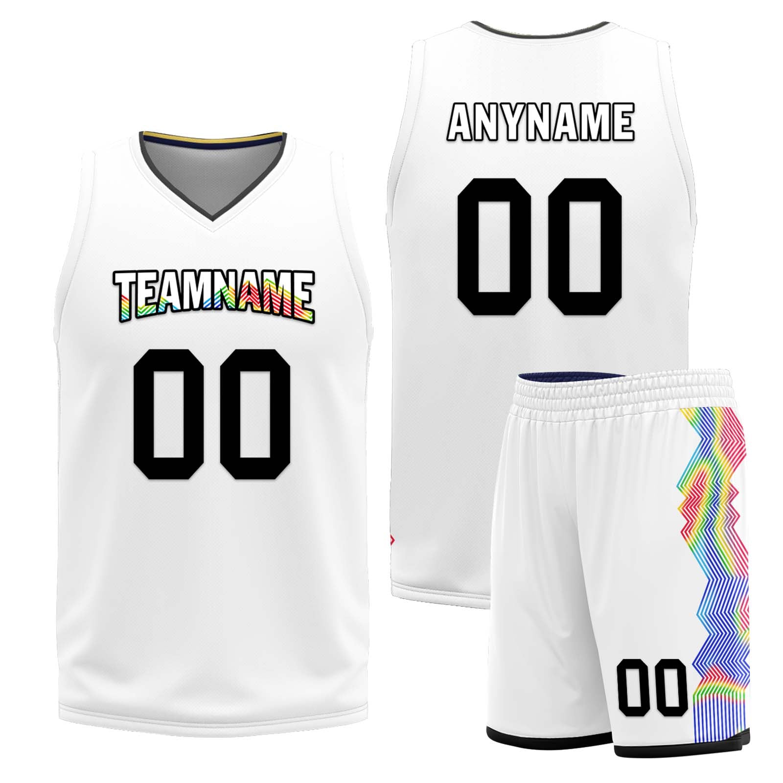 Custom White Rainbow Denver City Edition Personalized Reversible Basketball Set Sports Basketball Jersey BBJ01R-D0610-8