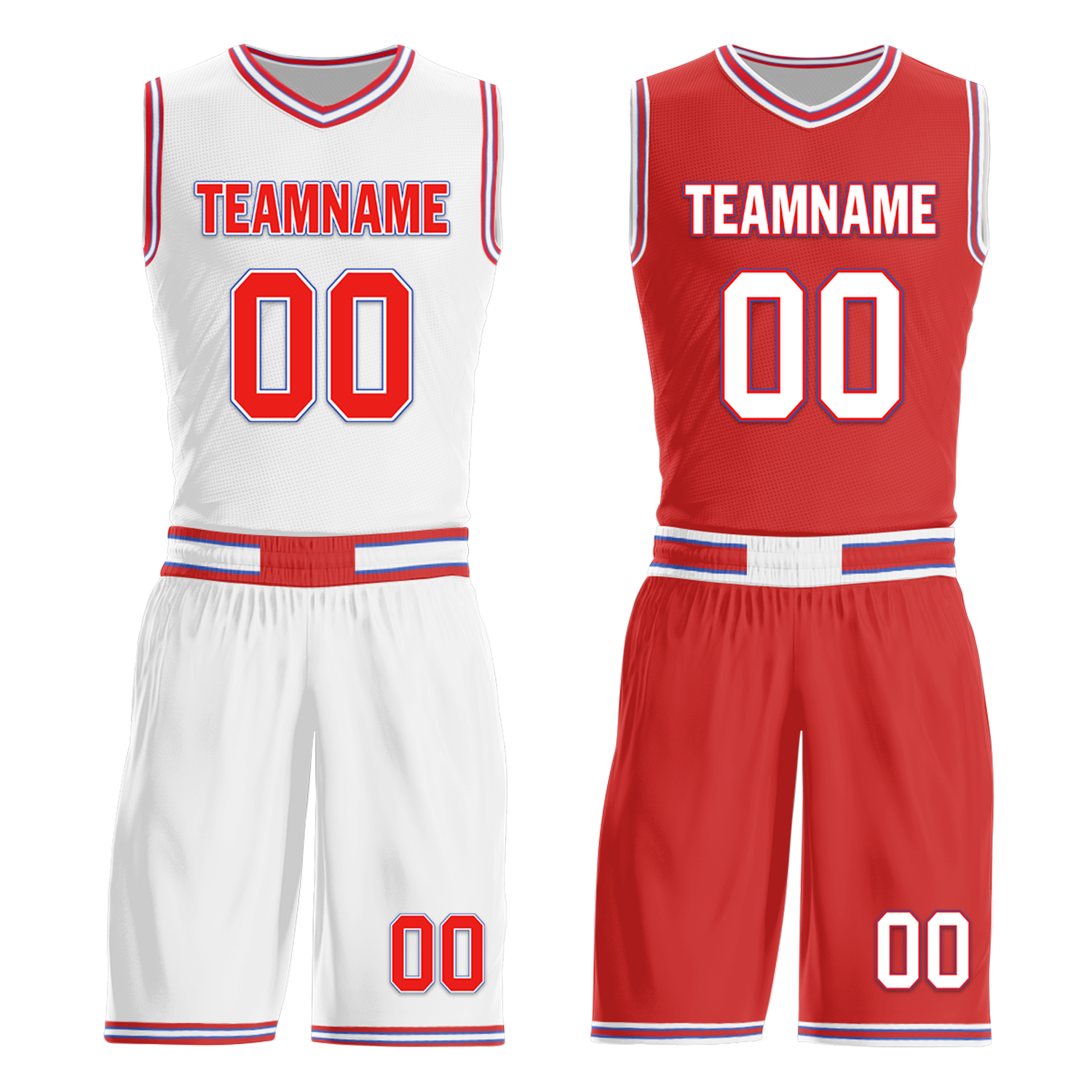 Custom White Red Classic Style Reversible Basketball Uniform Personalized COOLMAX BBJR-D017041