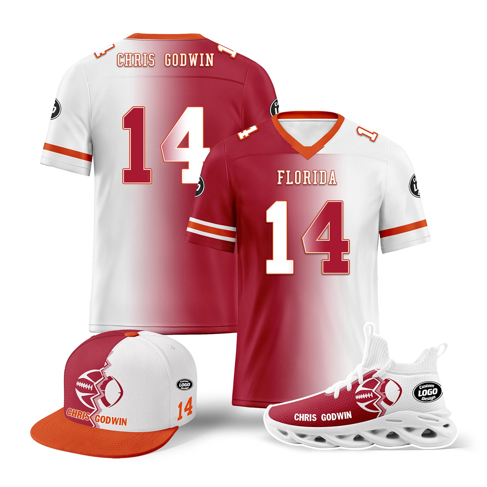 Custom White Red Florida Football Jersey MaxSoul Shoes and Hat Combo Offer Personalized Combo ZH-D028018-15