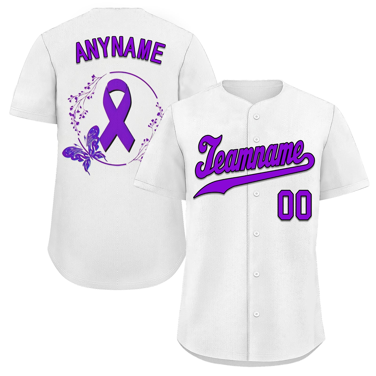 Custom White World Cancer Day Personalized Authentic Baseball Jersey BSBJ01-E06020-8