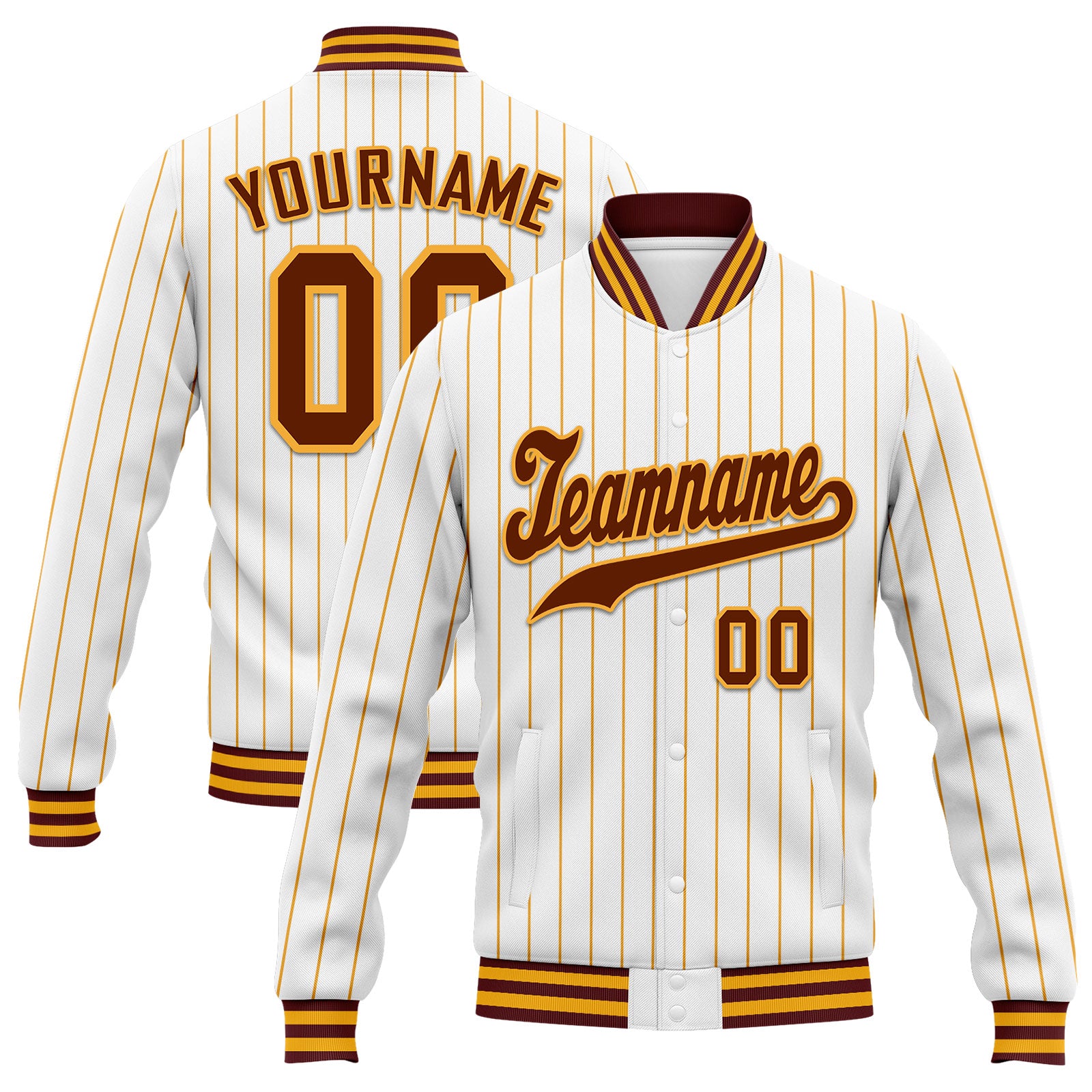Custom White Yellow Stripe Fashion Jacket Bomber Full-Snap Varsity Letterman Personalized Jacket FZ005-D020219-14