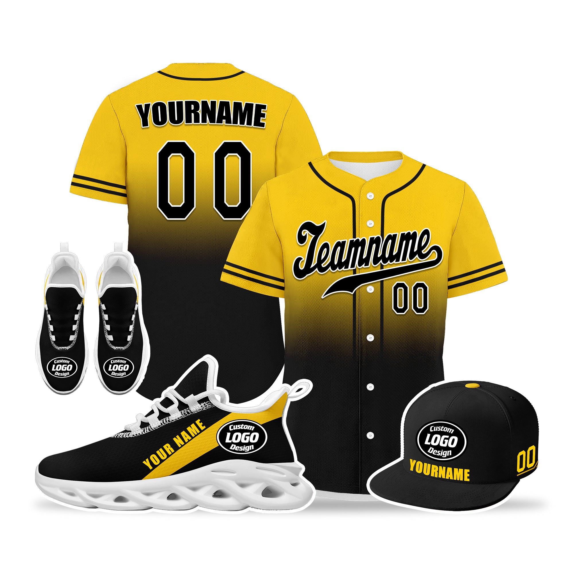 Elevate your fashion game with this exclusive combo deal featuring a custom hat, a pair of custom sneakers, and a custom jersey!