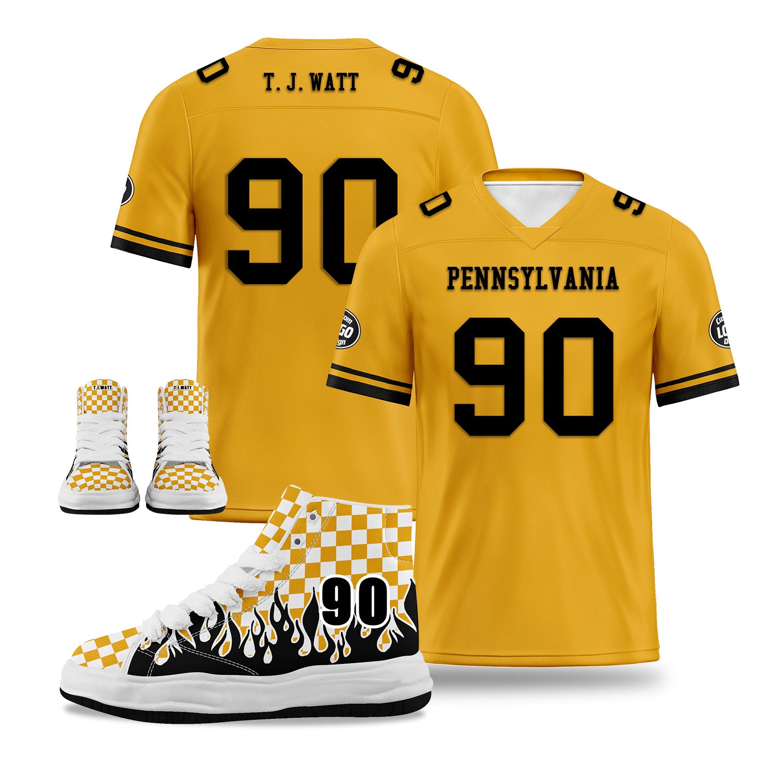 Custom Yellow Black Pittsburgh Football Jersey and Firesoul Sports Shoes Combo Offer Personalized Combo ZH-D020273-30