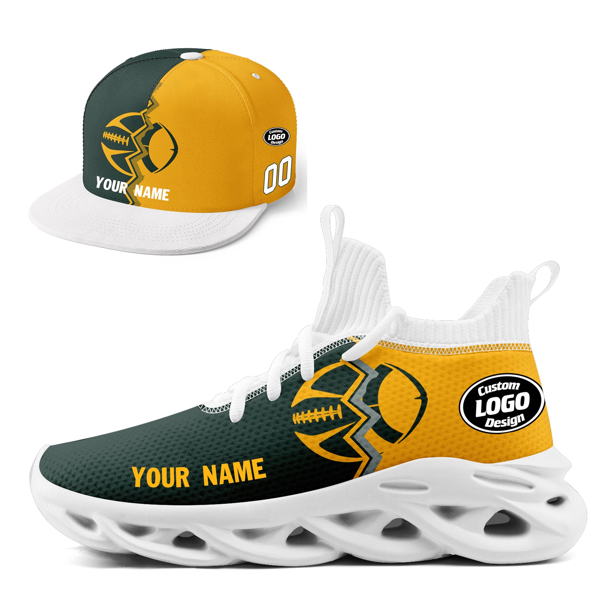 Custom Yellow Green Wisconsin MaxSoul Shoes and Hat Combo Offer Personalized Combo ZH-D028017-7