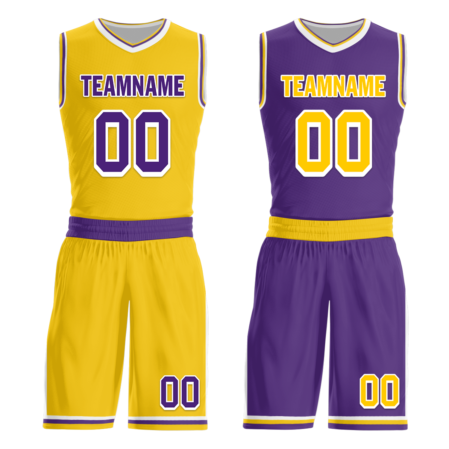 Custom Yellow Purple Classic Style Reversible Basketball Uniform Personalized Ordinary BBJR-D017034
