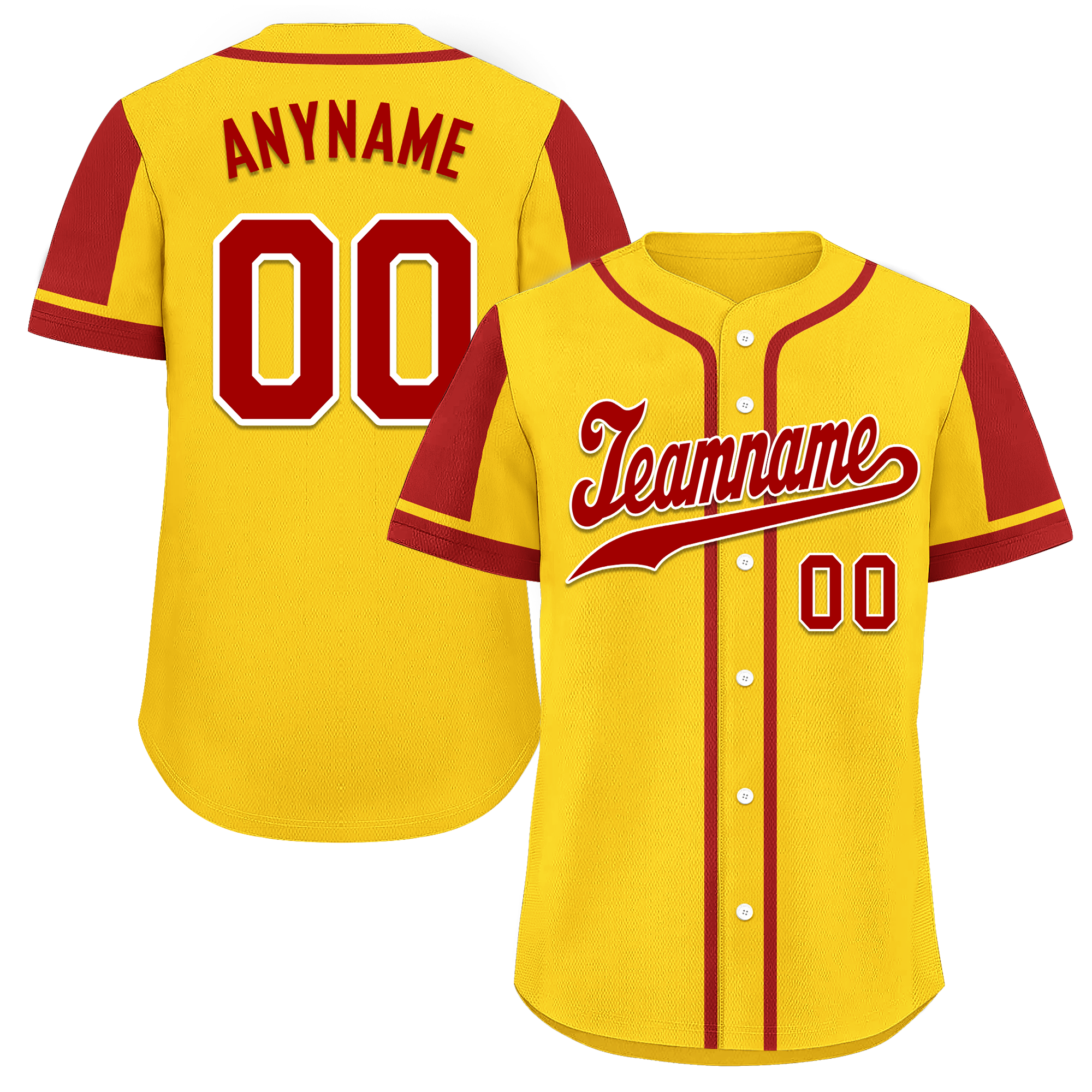 Custom Yellow Red Raglan Sleeves Personalized Authentic Baseball Jersey BSBJ01-D017203